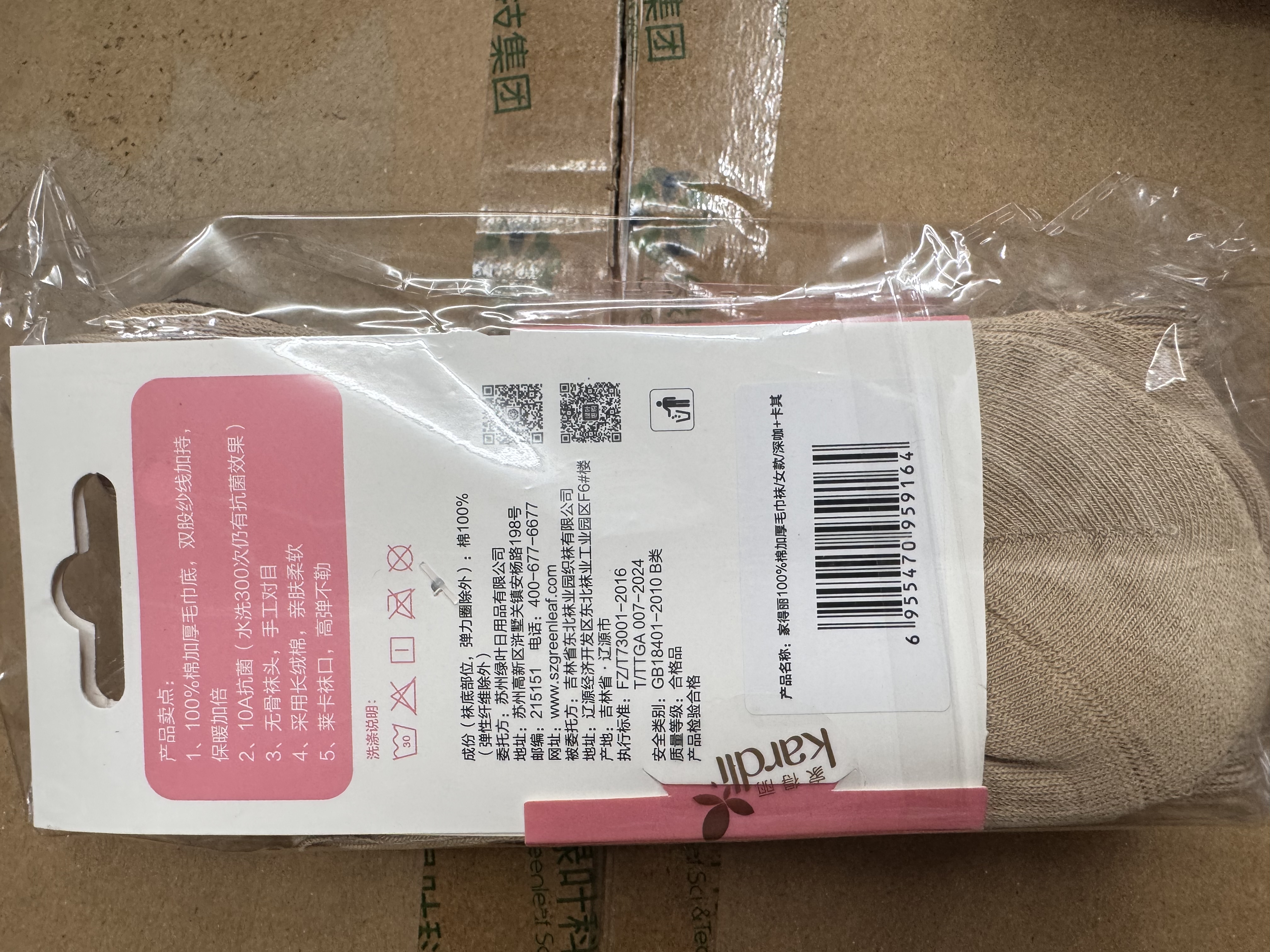 59164 家得丽100*棉加厚毛巾袜/女款/深咖+卡其